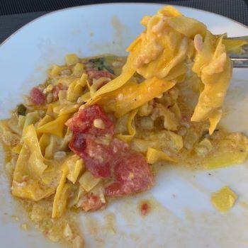 Sur la base de la recette de recette de tabliatelle de courgettes, voici une version améliorée et plus gourmande.